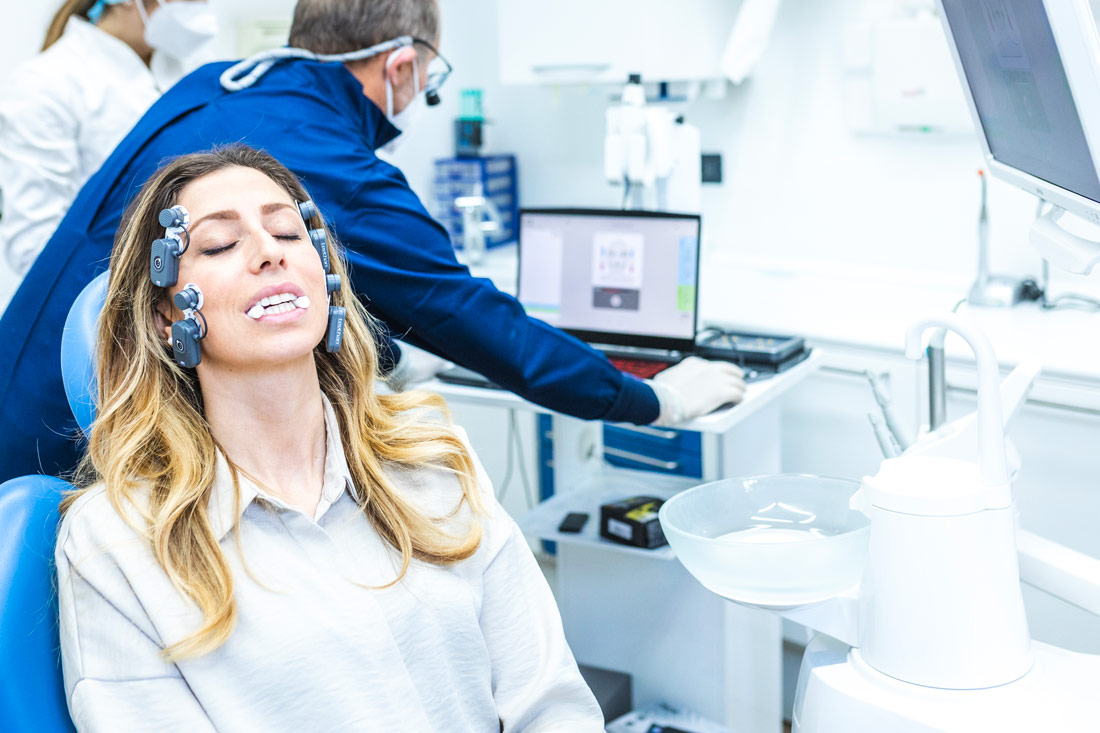 Una volta applicati gli elettrodi il paziente dovrà eseguire alcune semplici prove stringendo i denti.